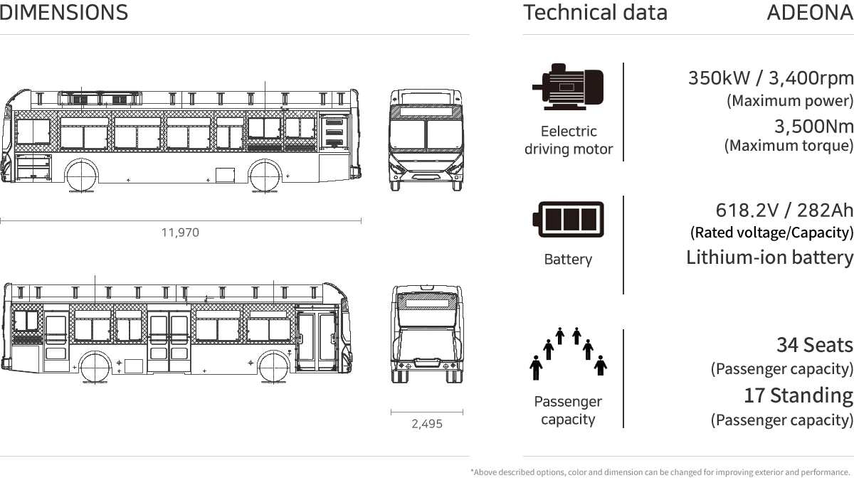 Passengers can hop in and out quickly through 3 passenger doors and ADEONA is emission and noise free electric bus.